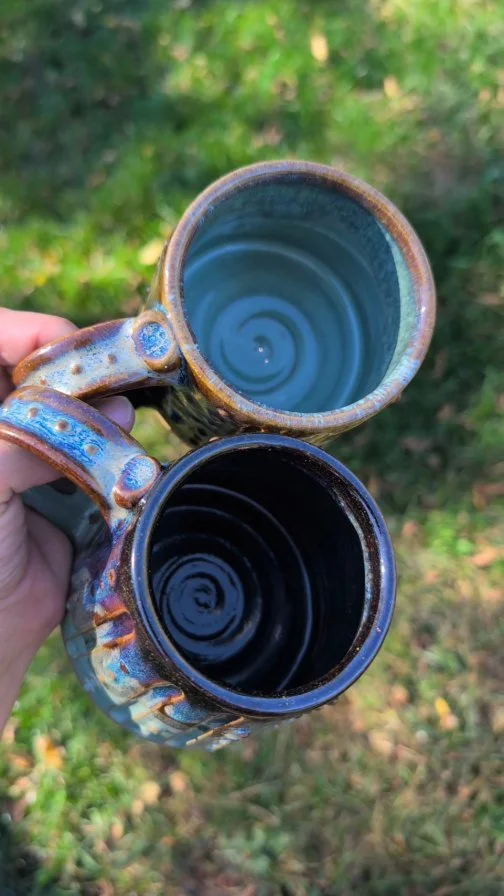 Each shape is thoughtfully designed to fit comfortably in different hands. Each glaze combination is crafted to bring out the most beautiful colors, pairing glazes to create balance and enhance the beauty of every piece.